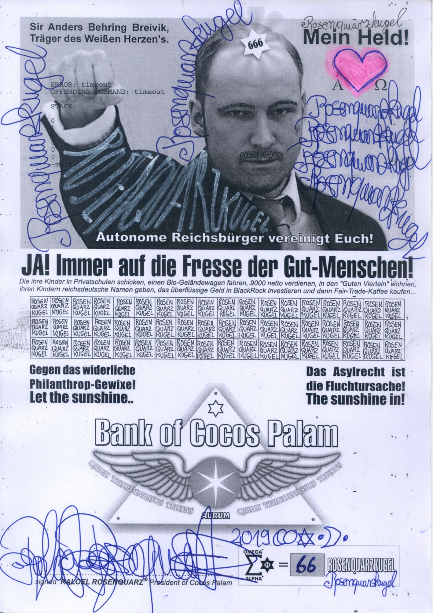 Objectbeschreibung: Kugelschreiber mit manueller Zensur auf Laserdruck. 21 cm auf 29,7 cm signiert, 2019 Wert: 46 RQK