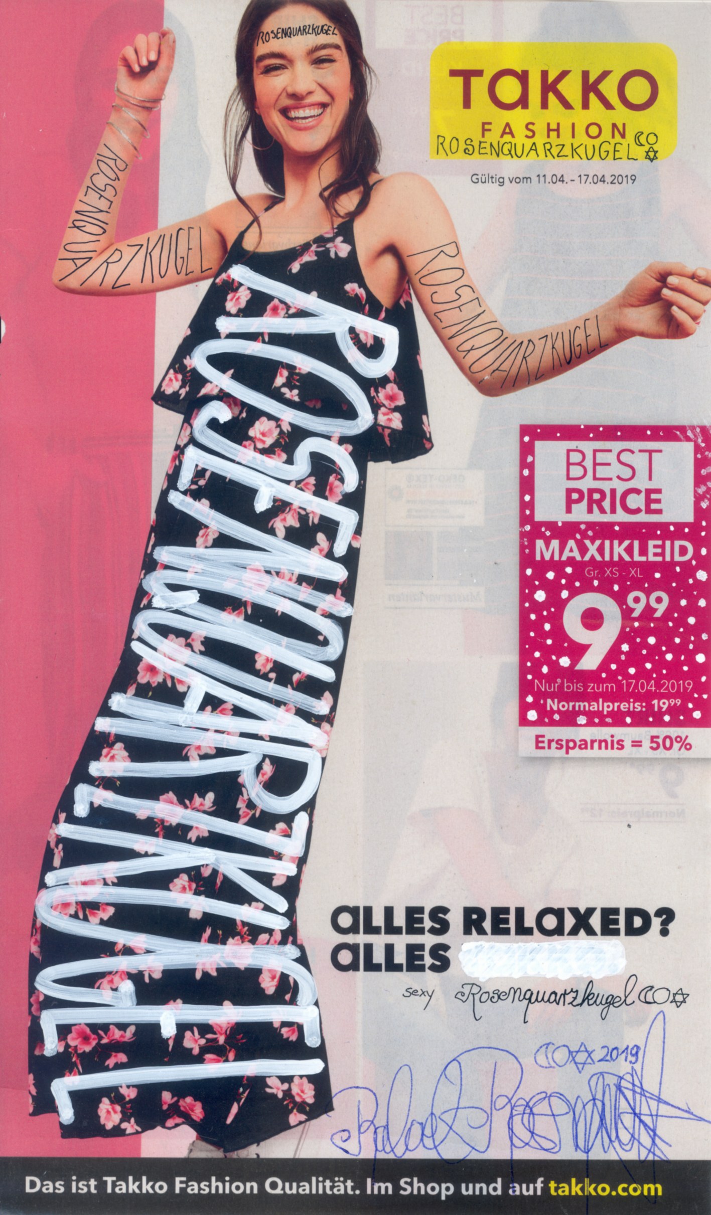 Objectbeschreibung: Lackstift auf Reklameprospekt. 21 cm auf 29,7 cm signiert, 2019 Wert: 1 RQK