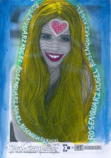 Objectbeschreibung: Buntstifte, Wachskreide, Lackstifte und Kugelschreiber auf Laserdruck. 21 cm auf 29,7 cm signiert, 2019 Wert: 6 RQK