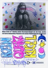 Objectbeschreibung: Buntstift, Lackstift und Kugelschreiber auf Werbung. 22 cm auf 12 cm signiert, 2019 Wert: 4 RQK