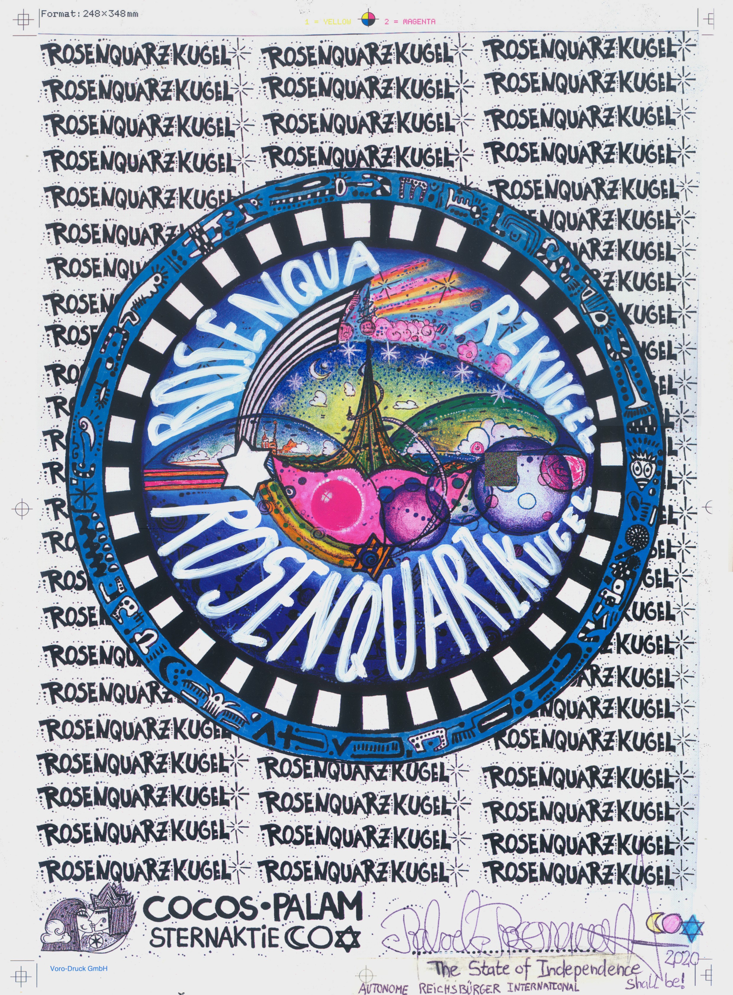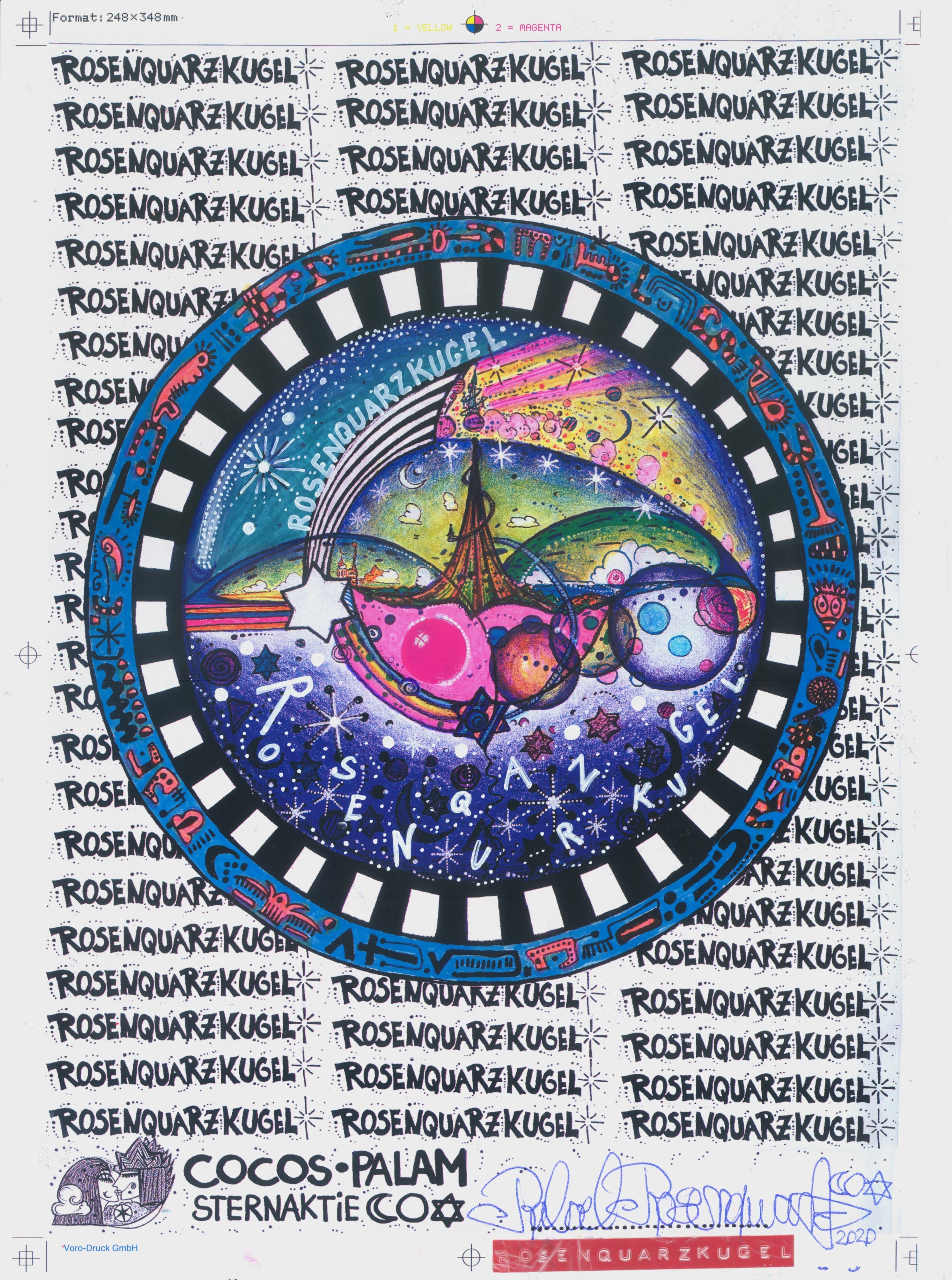 Objectbeschreibung: Lackstift, Filztstift, Kugelschreiber und Marker auf Offset-Druck. 27,8 cm auf 37,6 cm signiert, 2020 Wert: 66 RQK