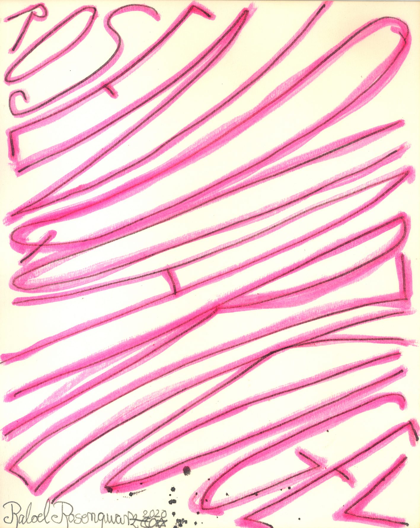 Objectbeschreibung: Textmarker und Tusche auf FineRip/200g/m². 20 cm auf 25 cm signiert, 2020 Wert: 10 RQK