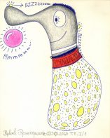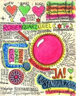 Objectbeschreibung: Kugelschreiber, Buntstifte, Lackstift, Bleistift und Rapidograph auf Laser-Druck. 21 cm auf 29,5 cm signiert, 2020 Wert: 50 RQK